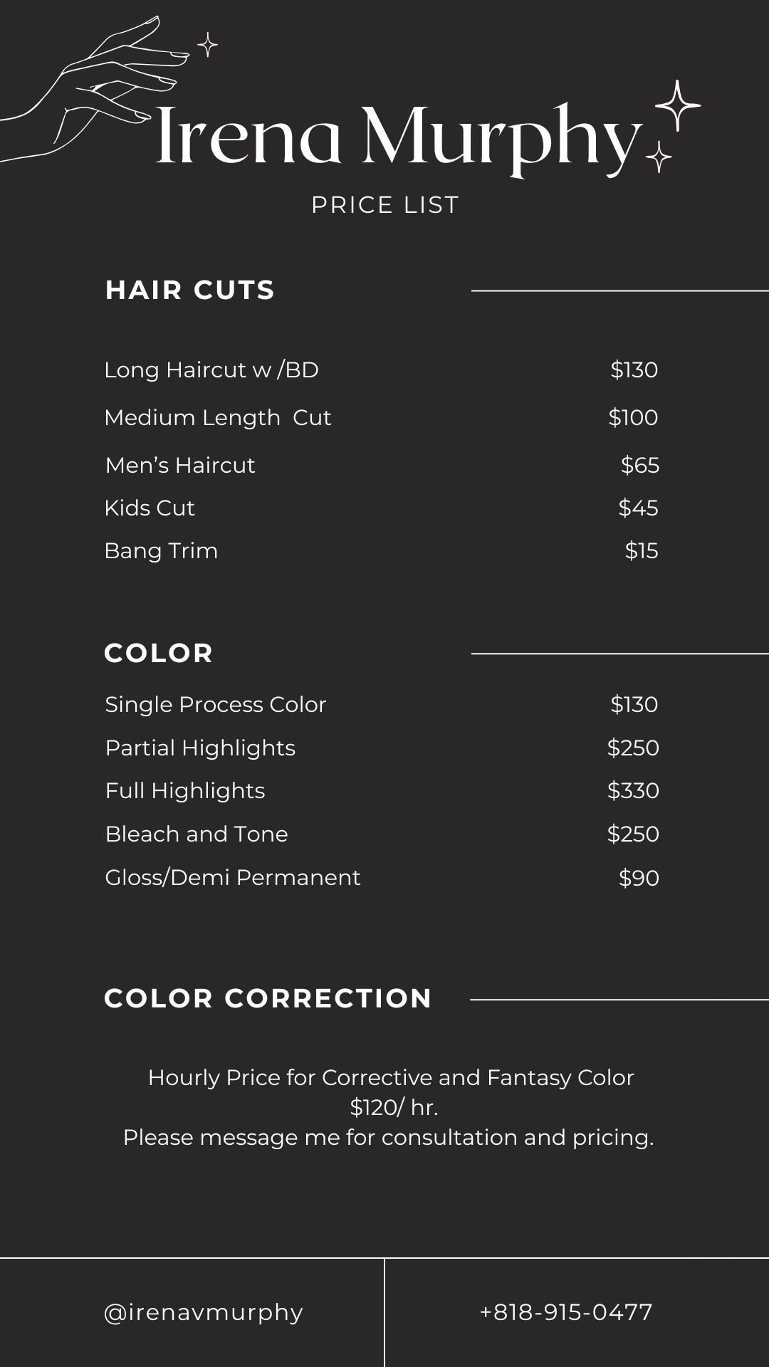 I'll be renting a space on Sundays to take both cut and color clients in the valley.